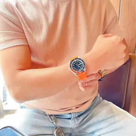 Черный циферблат с оранжевым силиконовым ремешком и технологией Super Lume позволяет отслеживать время в условиях низкой освещенности. Минеральное стекло защищает циферблат от царапин и повреждений.