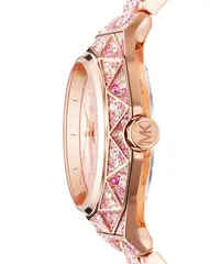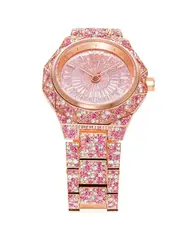 Часы изготовлены из нержавеющей стали, что обеспечивает их долговечность и надежность. Корпус диаметром 41 мм украшен деталями паве и камнями багетной огранки, что придает им особый шик. Фурнитура цвета розового золота добавляет изысканности и подчеркивает ваш статус.