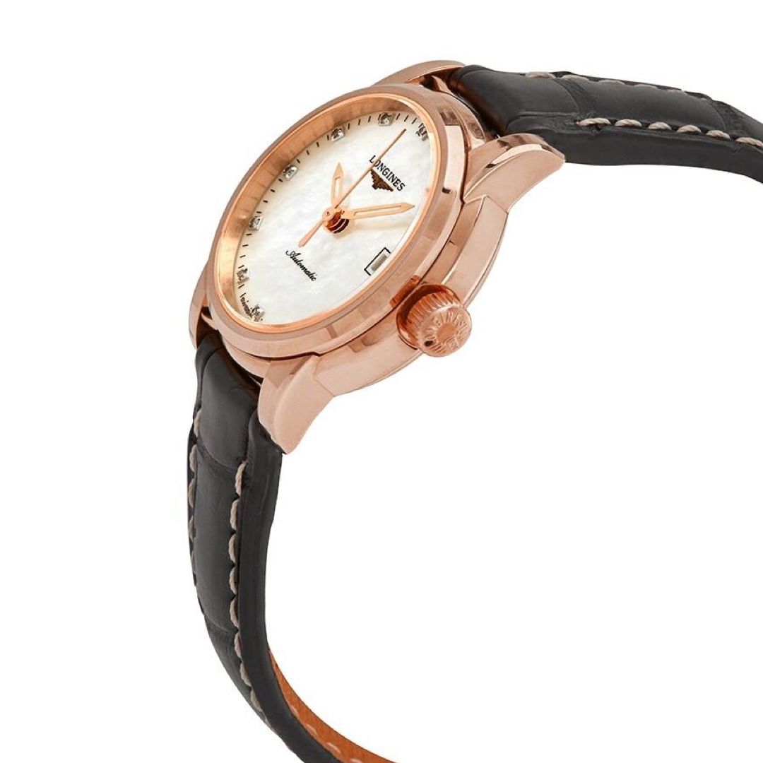 Наручные механические часы Longines Saint-Imier Collection L2.263.8.88.3 - это классический аксессуар на каждый день, который станет незаменимым элементом вашего гардероба. Часы оснащены автоматическим калибром Longines Calibre L595 на основе ETA 2000-1, работающим с частотой 28'800 полуколебаний в час и обеспечивающим запас хода примерно на 40 часов. Это гарантирует точность и надежность хода. Перламутровый циферблат украшен стрелками и индексами оттенка розового цвета, что придает часам элегантность и женственность. Материал корпуса - золото 18 карат. Часы имеют аналоговый формат отображения времени, что позволяет легко считывать время в любых условиях. Дисплей даты размещен в положении «3 часа», что делает его удобным для быстрого просмотра. Устойчивое стекло создано из прочного сапфира, устойчивого к образованию царапин. Это обеспечивает долговечность и защиту от повреждений. Прочная задняя крышка выполнена в прозрачном варианте, что позволяет видеть сложный механизм внутри. Браслет часов выполнен из натуральной кожи, что обеспечивает комфорт при носке и долговечность. Водоустойчивость часов составляет 3 бар (30 метров), что достаточно для ежедневного использования. Официальная гарантия на часы подтверждена международным сертификатом, подтверждающим высокую степень надежности и долговечности. Longines Saint-Imier Collection L2.263.8.88.3 - это не просто часы, это символ статуса и стиля, которые станут незаменимым аксессуаром для представительниц прекрасного пола всех возрастов.